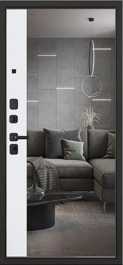 Надежная входная Дверь Scandi с зеркалом премиум класса по цене 46 679 руб. Большая толщина стали защитит от проникновения в ваш дом, квартиру или коттедж. Используется очень качественная фурнитура: замки, цилиндры, ручки, защелки. Покрытие и отделка двери изготовлено под внимательным контролем производителя. Дверь имеет долгий срок службы и гарантию.